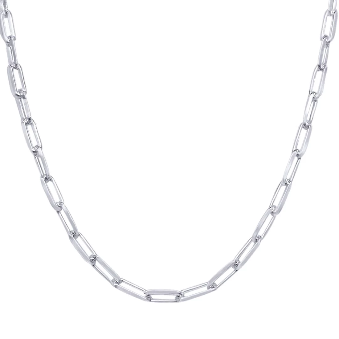 This lovely Sterling Silver Wide Paperclip Link Necklace is 45cm. The hypoallergenic alloy means you can wear this necklace comfortably all day and night long.