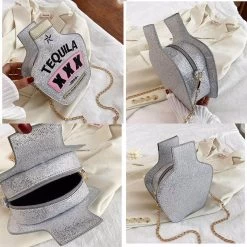Beakey Tequila Bottle Shaped Laser Shoulder Handbags PU Crossbody Purse For Women-SequinSilver