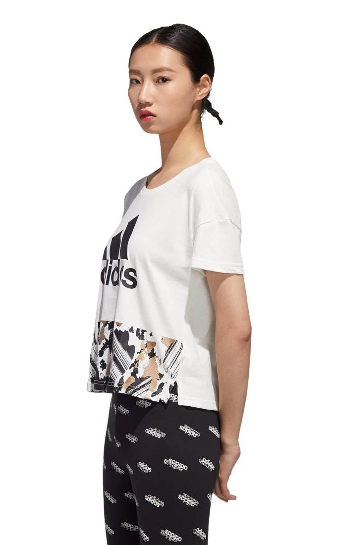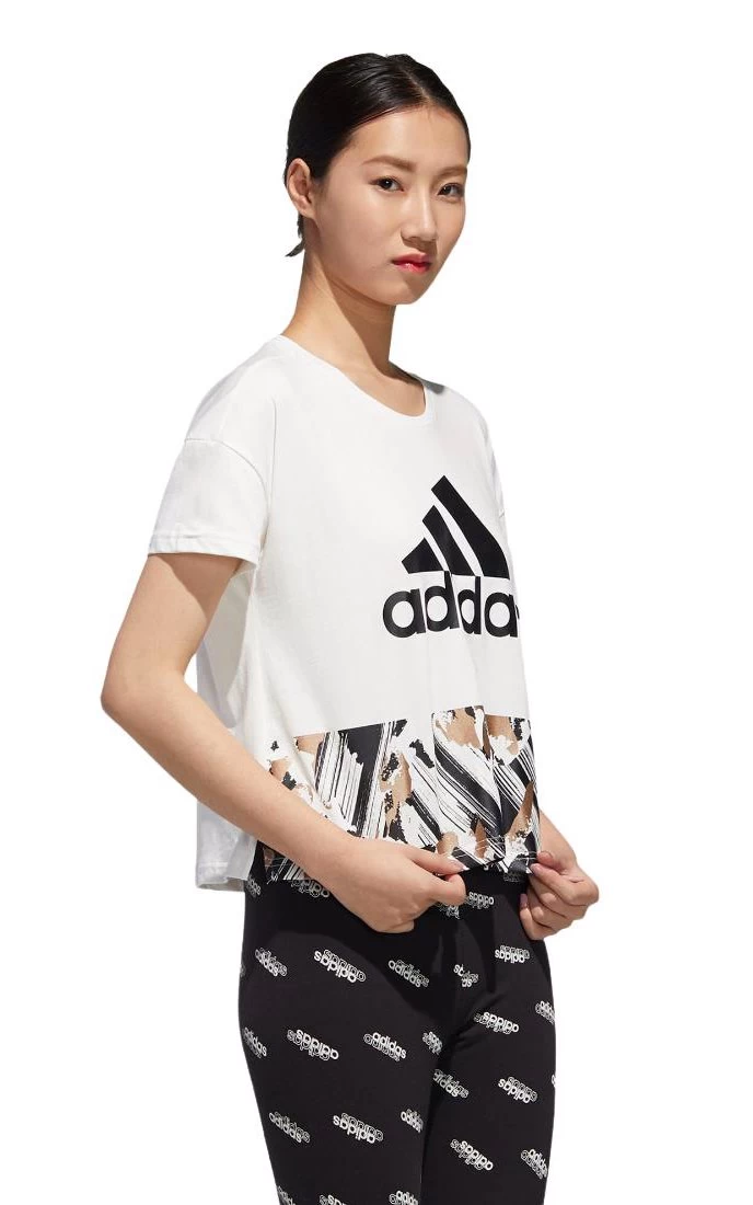 This Adidas womens cropped tshirt is a loose fit with crewneck design for extra comfort.It is a crop top with drop shoulders keeping with current trends.Whether it is for training or everyday wear, it is a perfect addition to any stylish wardrobe.