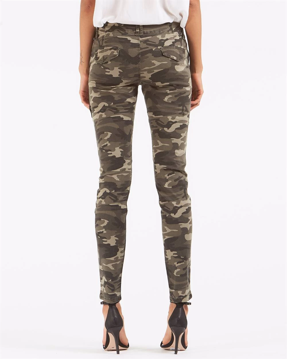 - The Charlize Pants by Amelius Sydney based label, are a classic to add your closet. Crafted in heavyweight camouflage cotton twill these can easily be dressed up or down. Pair with heels for a glamorous look, or sneakers for everyday wear. Our model is wearing a S/8. She usually takes a standard AU 8/Small, is 5’10in (178cm) tall, has a 76cm bust, 79cm hips, and a 65cm waist. Length: 96cm at the side, 76cm inner leg length Skinny fitted Zip fly closure Side pockets Aesthetic zip pockets Cold machine wash. Cool iron. Fabric/Material: Woven. Material: 97% Cotton, 3% Spandex