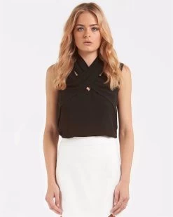 - Elegant, sophisticated and one of a kind the Deliah Top by Sydney based label Amelius is a show-stopping top. The top is delicately constructed with a cross body pleated panel, that assembles to a halter neckline. The textured pleating, and fabricated neckline, enhance a basic top into something unique. The slim fitting cut and sleeveless detailing exude elegance. This top is best worn tucked into a pencil skirt or trousers for any special event.