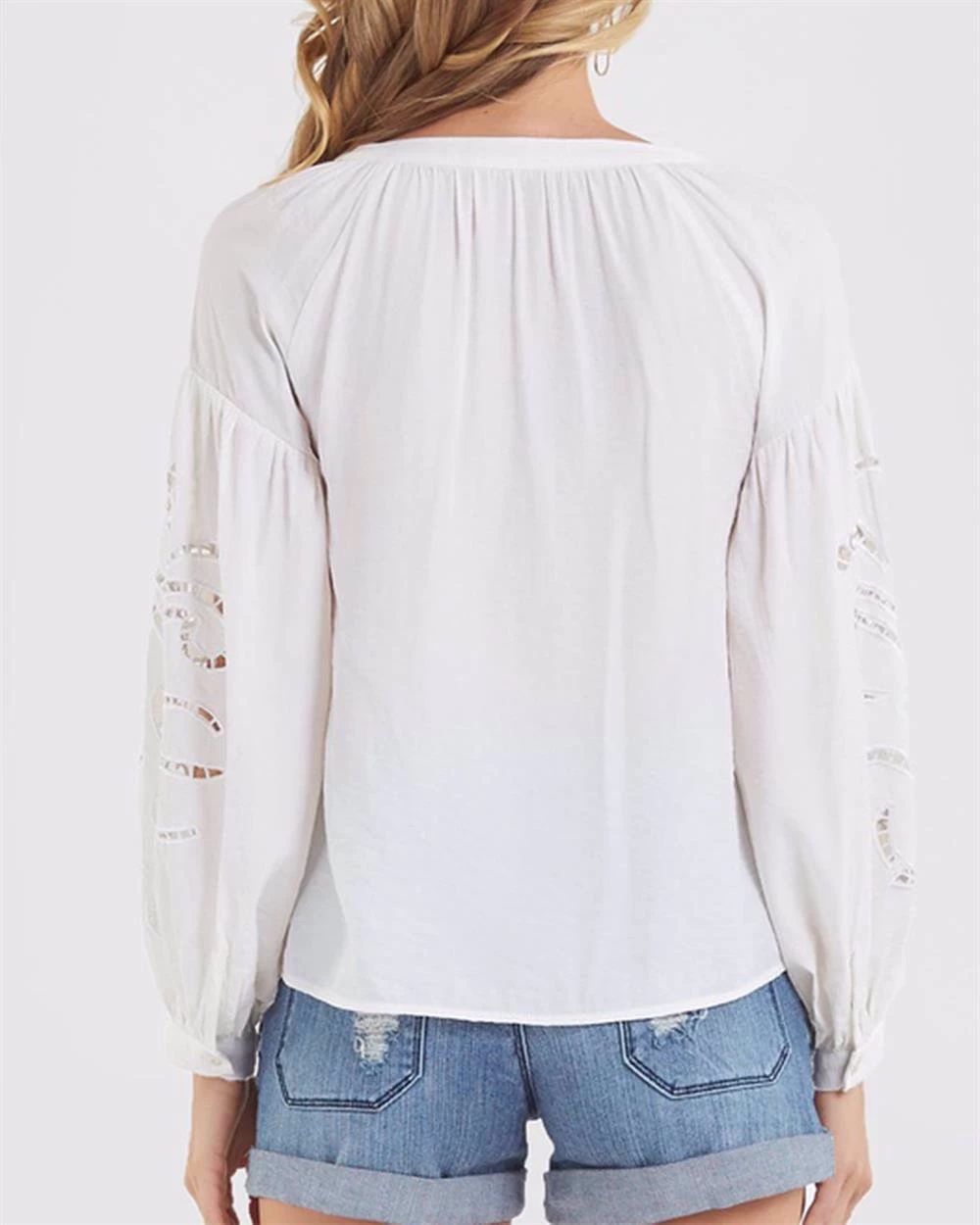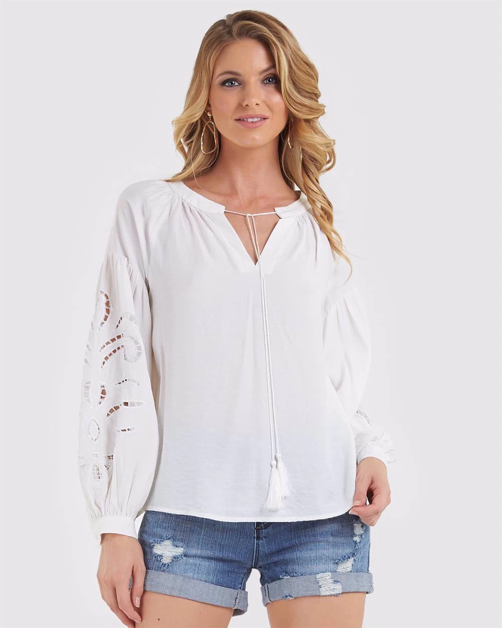 - Woven from a light and airy material the Florence Blouse by Sydney based label Amelius will be the perfect addition to your everyday, summer wardrobe. Rendered with V-Neckline, anchored by an adjustable drawstring tie, the blouse features unique floral cut detailing, blouson long sleeves, cuffed at the bottom. This blouse will be the perfect companion to some high rise denim for a casual yet stylish summer ensemble.
