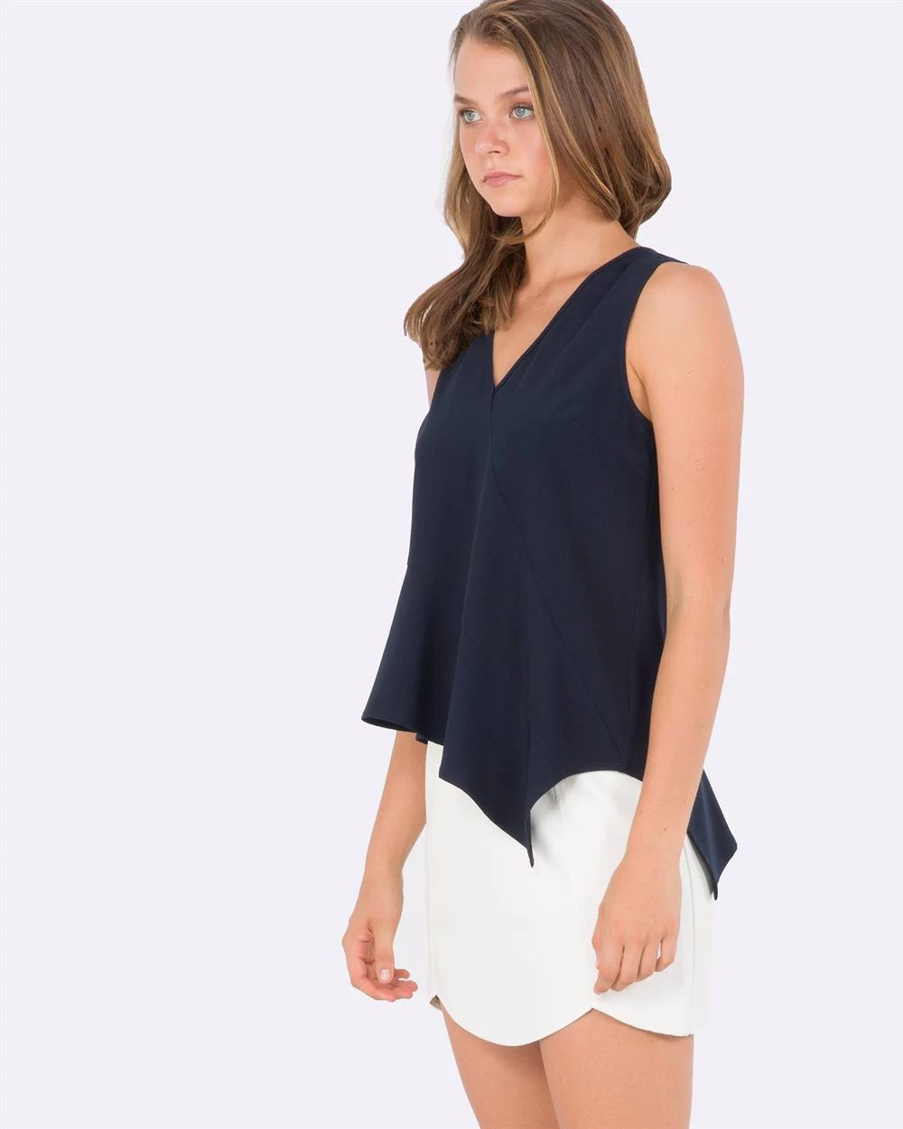 - With its curved and pointed panelling throughout the bodice, the Magnet Top by Amelius the Label is a uniquely flattering take on a sleeveless blouse. The V-Neckline and soft woven fabric make this piece breathe femininity.