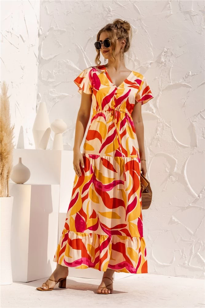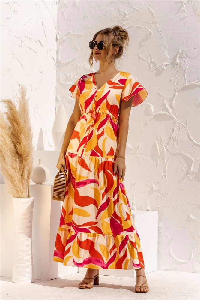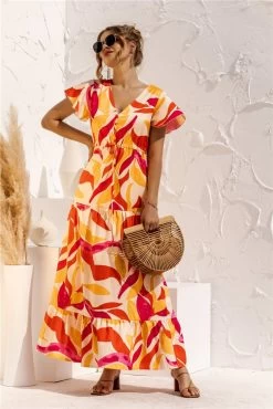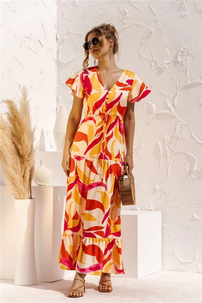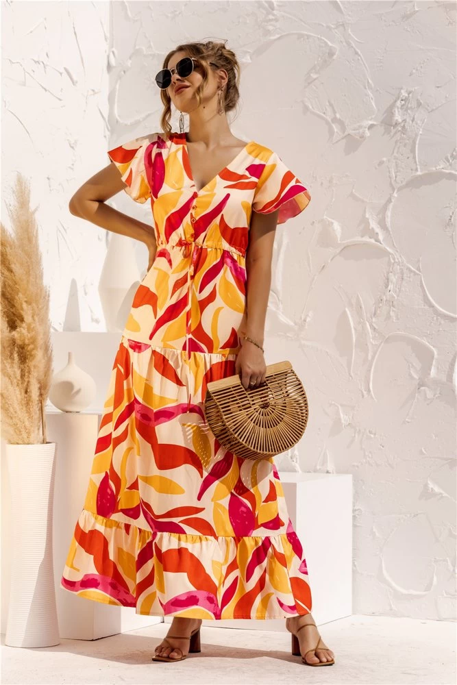 - Anette Women’s Short Sleeve Button Print Dress Yellow & Multicolor Print