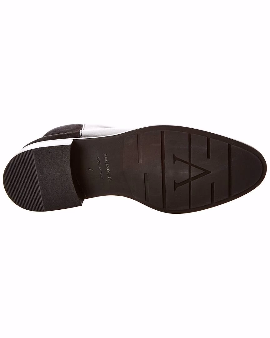 - Color/material: black calf leather and suede