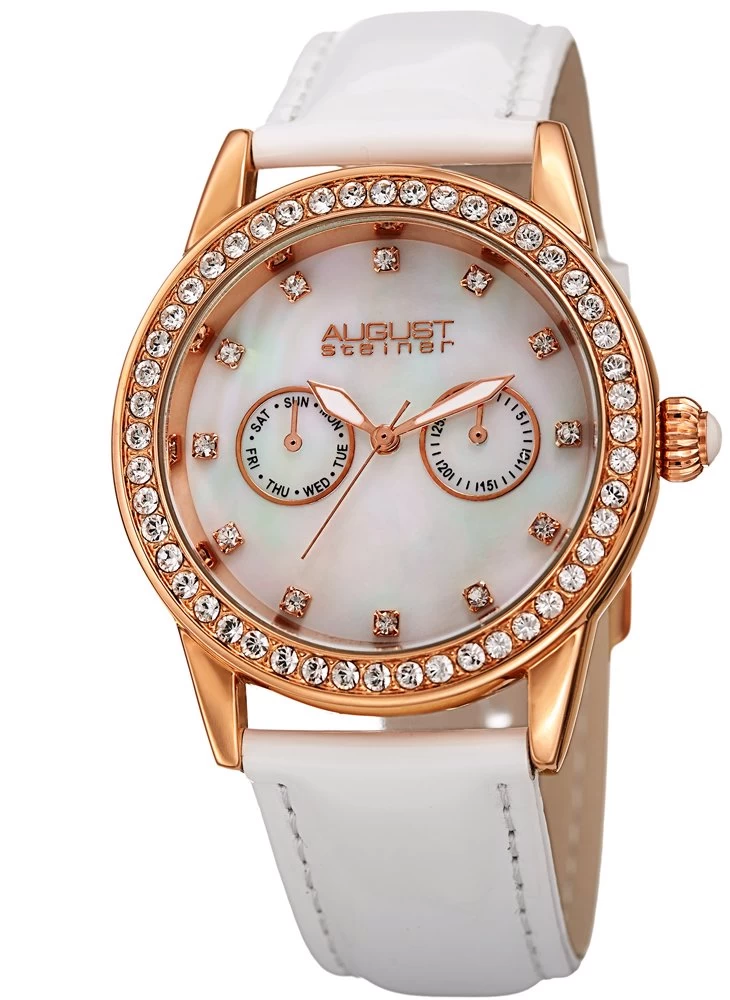Akribos XXIV Women’s Quartz Diamond Oyster Shell Pattern Rose-Tone Bracelet Watch – Rose Gold/White