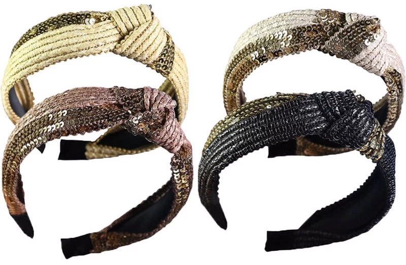 - Sequins headbands design.These headbands stand out with bling sequin,as well as a pretty top knot in the center,adding to each headband’s style.