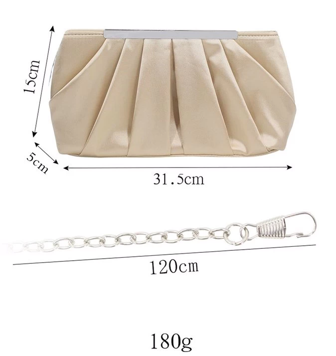 - Material:High quality satin.This Evening Clutch Bag is fabricated in an elegant ruching silhouette with refined satin, soft and sleek, while solid and durable.