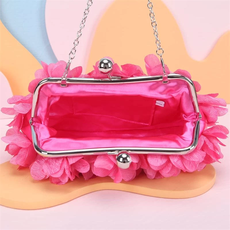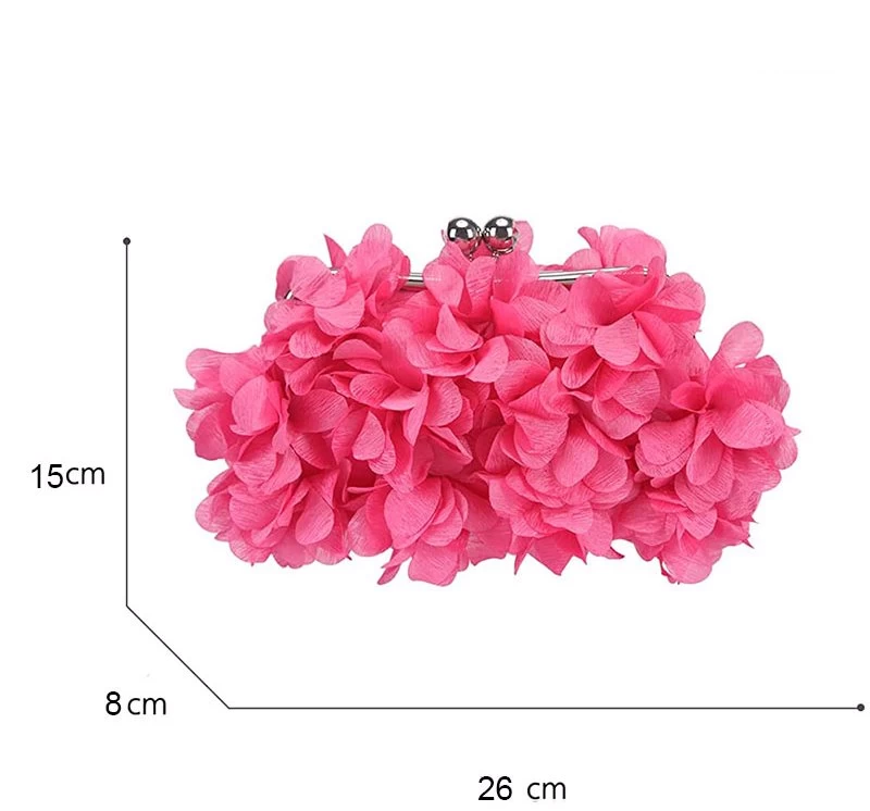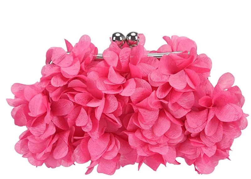- Design:The included chain straps can be used to convert this handbag from a clutch to a chic over the shoulder bag.Beautiful satin flower makes this clutch an interesting and unique statement.