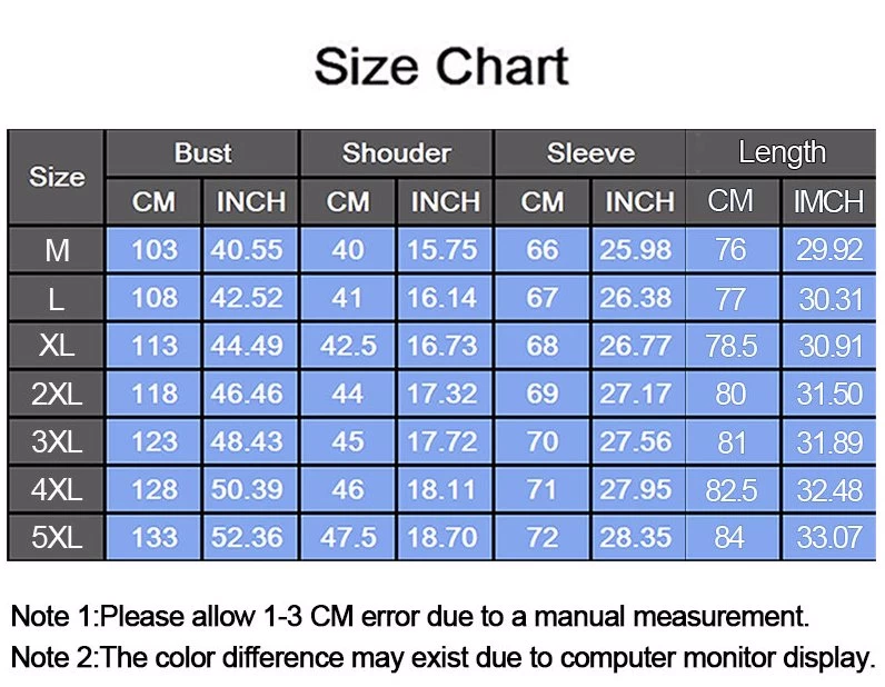 - Size: M/L/XL/2XL/3XL/4XL/5XL