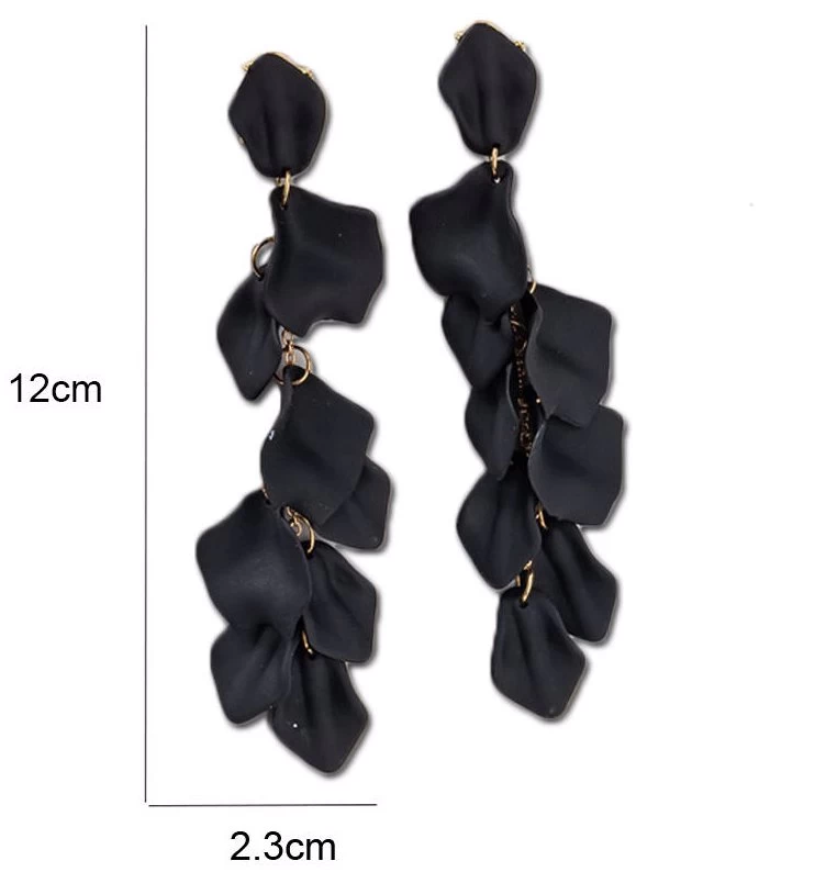 - Bring out your inner sophistication with these acrylic Rose Petal drops dangle earrings- crafted from Gorgeous acrylic petals worn in string around the ears . exaggerated and eye-catching,These long Muti-Tiered Flower earrings are distinctive pieces that add a contemporary finish to any outfit, whether you’re going to work, going out, or going all-out.