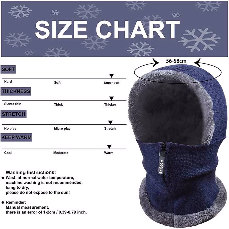 - Size: Hat circumference 56-58cm with zipper