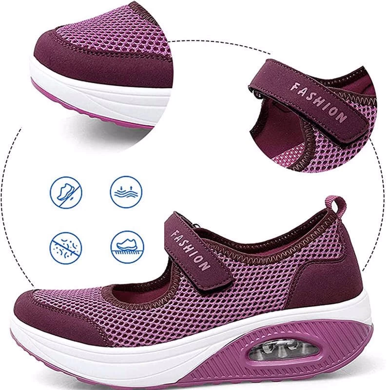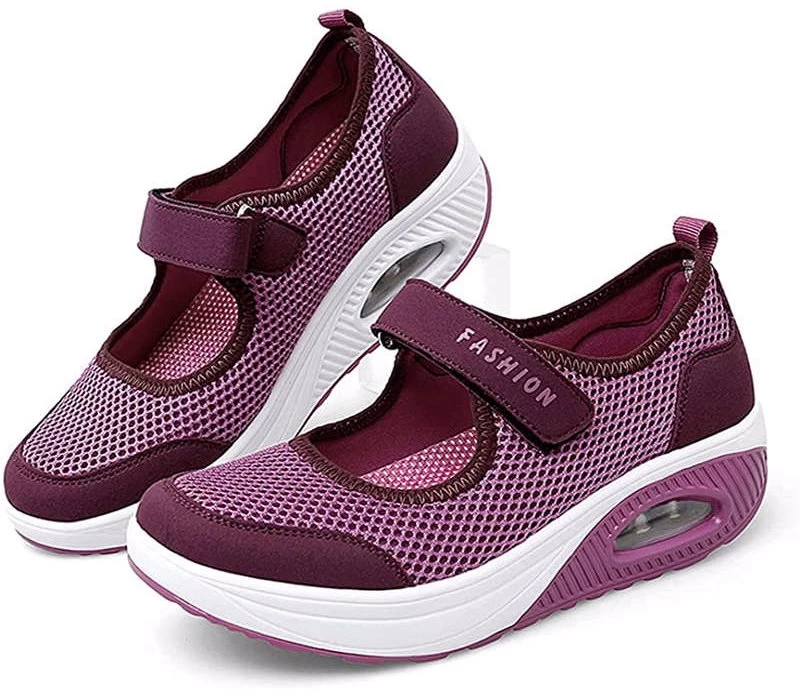 - The adjustable closure makes the shoes loose or tight. Special air cushion sole with arch support. The wide toe exhalation cloth and elastic hollow knit upper make your feet more comfortable.