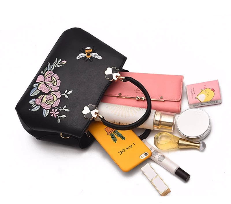 - Two main compartments, a middle zipper pocket, two small side pockets and one zipper side pocket, one back zipper pocket can hold your keys or cards. The black purses bag for women can hold an iPad mini, phone, wallet and some small stuff.