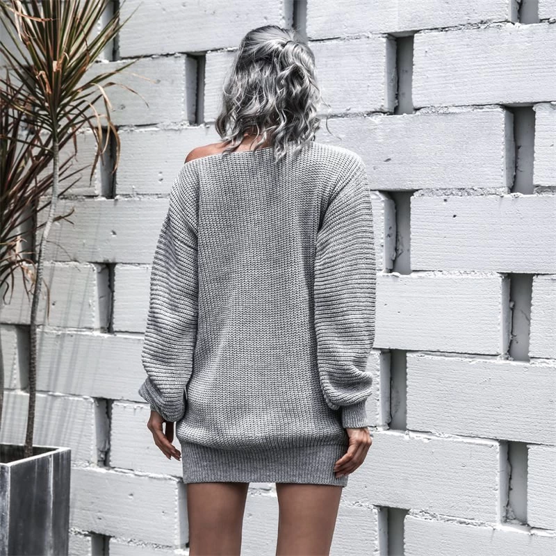 - Off-the-shoulder loose pullover sweater dress, loose sweater, creating a laid-back atmosphere with a little sexy at the same time.