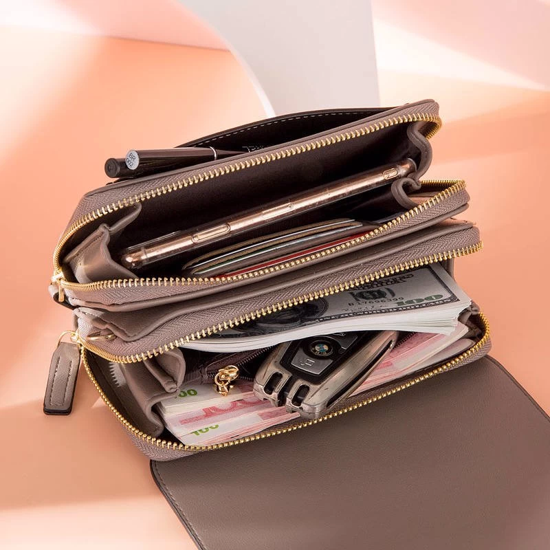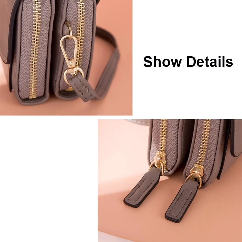 - SMALL SIZE BUT ROOMY SPACE:2 x zippered main pocket and 1 x interior zipper coin pocket, capable for storing your daily necessities,such as phone,keys, lipsticks, cash,coins,napkin paper and other small items.3 x card slots for credit cards,ID,Driver’s License.1 x front pocket fit cards,checkbook,passport,receipt.