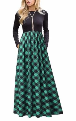- A beautiful tartan maxi dress is a staple in any women’s closet. This soft stretchy, oh so forgiving dress is perfect for all occasions! Layer with fur vest or scarf! Pair this dress with flats for a casual look or pair it with heels and long necklace on date night. Also, it perfect for Merry Christmas season!
