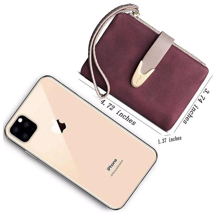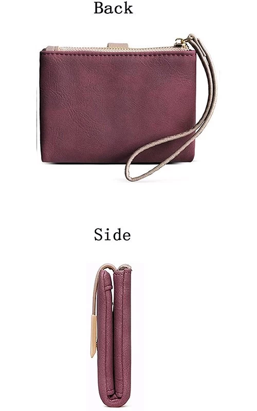 - Material: This womans wallet is made of high quality PU leather,golden zipper and buttons,reticulate id window,and with a wrist strap on the ladies wallets.