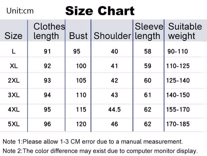 - Size:L,XL,2XL,3XL,4XL,5XL