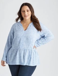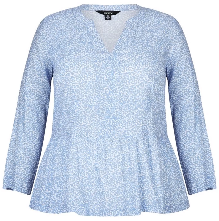Beme Long Sleeve Stud Detail Top Blue Ditsy – Plus Size