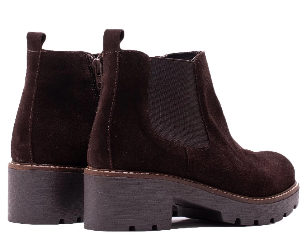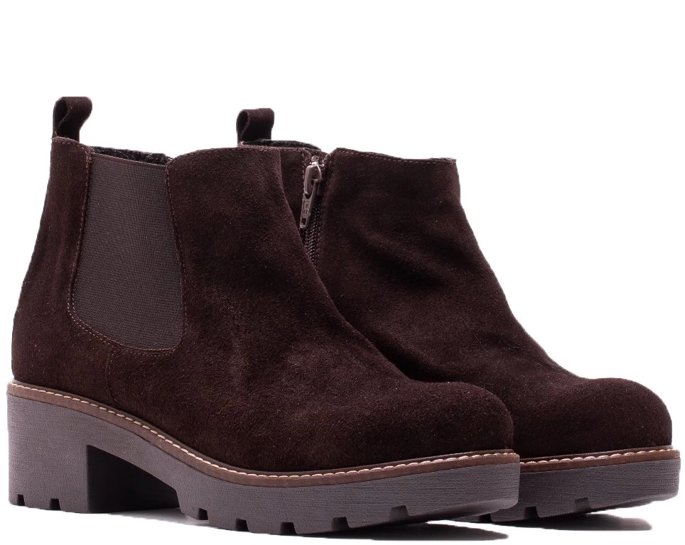 - ankle boot in suede with elastic. low block heel.