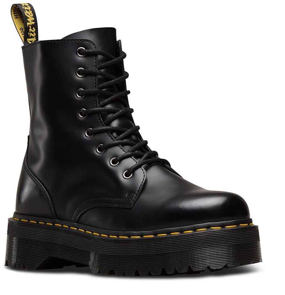 A fierce evolution of our 8-eye boot, the Jadon retains all its original details — grooved edges, yellow stitching and a heel-loop — and adds a chunky, empowering platform sole.