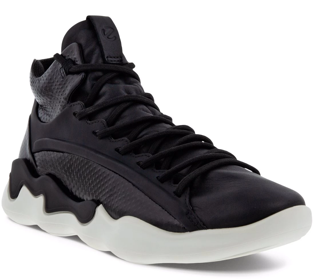 - This edition of the ECCO ELO is crafted from a blend of full-grain leather, premium textile detailing and a modern, flexible PU embellishment that accents the eyelet area. Featuring extra padding at the collar for comfort and elastic, quick-fit lacing that lets you easily slip them on and off, these sneakers boast an eye-catching design and all-day wearability. Crafted from full-grain leather, made in our own tanneries, with textile detailing. Lace eyelet area embellished with an edgy design element that runs down the sides of the vamp and wraps around the back of the heel.