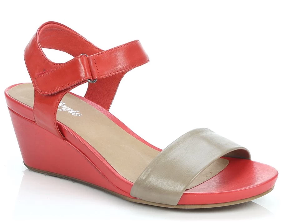 Effegie Women’s Palerma Italian Leather Wedge Heel With Velcro Ankle Strap – Red/Taupe