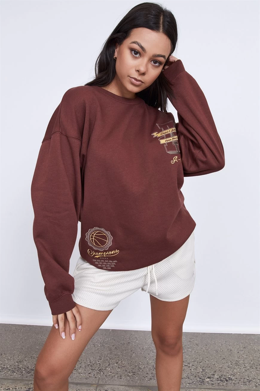 Cosy Comfort Is The Latest Trend You Do Not Want To Miss! The Oversized Graphic Crew Is, Perfect For Layering Up Or Pairing Back With Your Newest Factorie Trackies Or High Waisted Bike Shorts For The Ultimate Street Style Look.