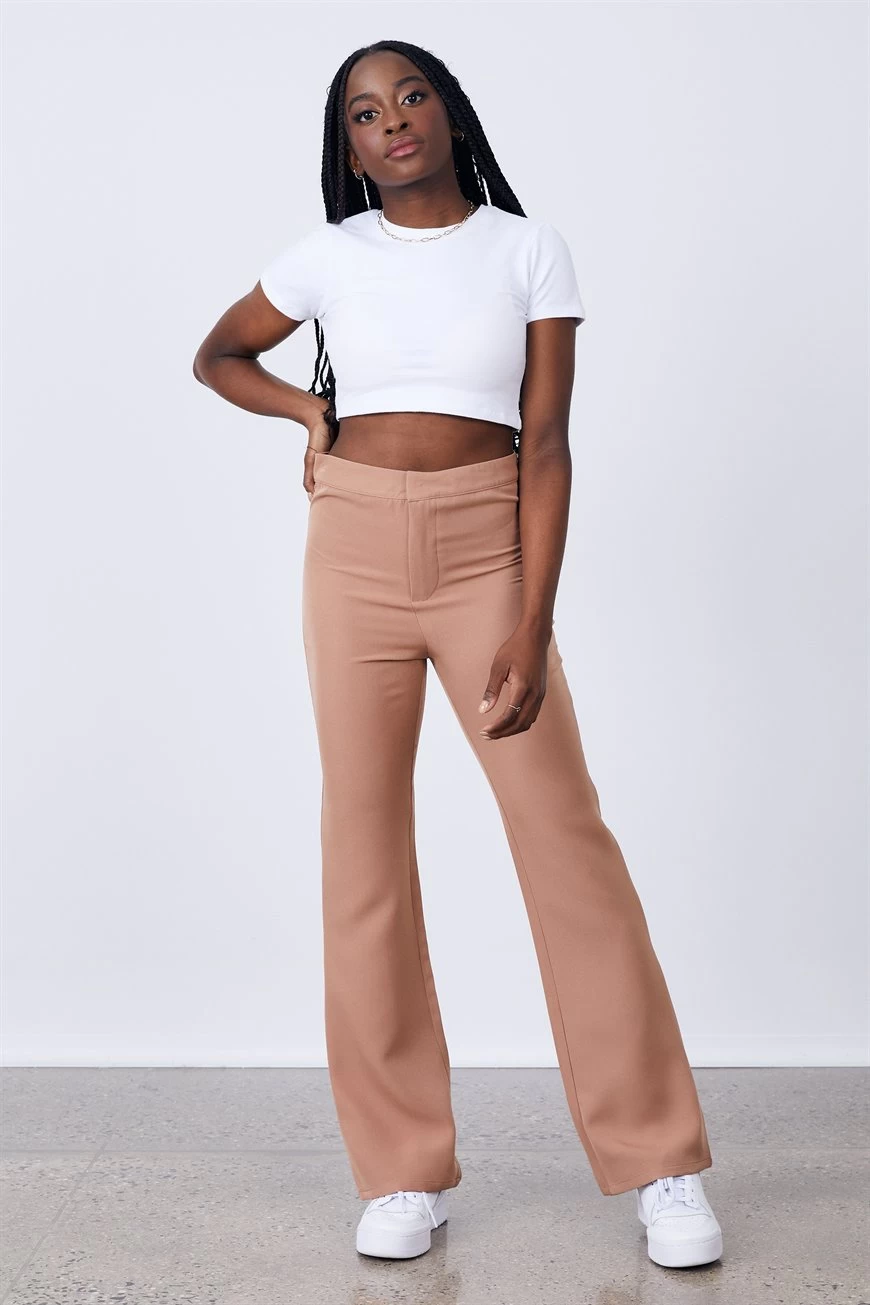 Pants Are So In Rn And This New Addition Is No Exception. This Style Is High Rise, Firm Fitting Through The Leg, Following With A Flare To Style Up Your Fit. This Fabric Also Has All The Right Stretch, So You Can Wear It From Day To Night.