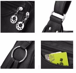 Beakey Women Crossbody Bag Leather Handbag Pocketbook Lightweight Shoulder Purse-Black