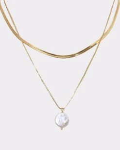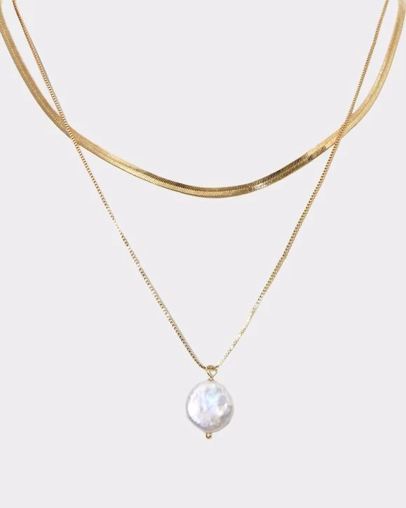 For a versatile necklace suited to any occasion, reach for the Ines 16k Gold Plated 2pc Necklace Set. Featuring a simple gold chain and a longer gold chain with a pearlescent pendant, this piece offers endless styling options. Wear them separately with any outfit or pair them together for the ultimate statement piece.