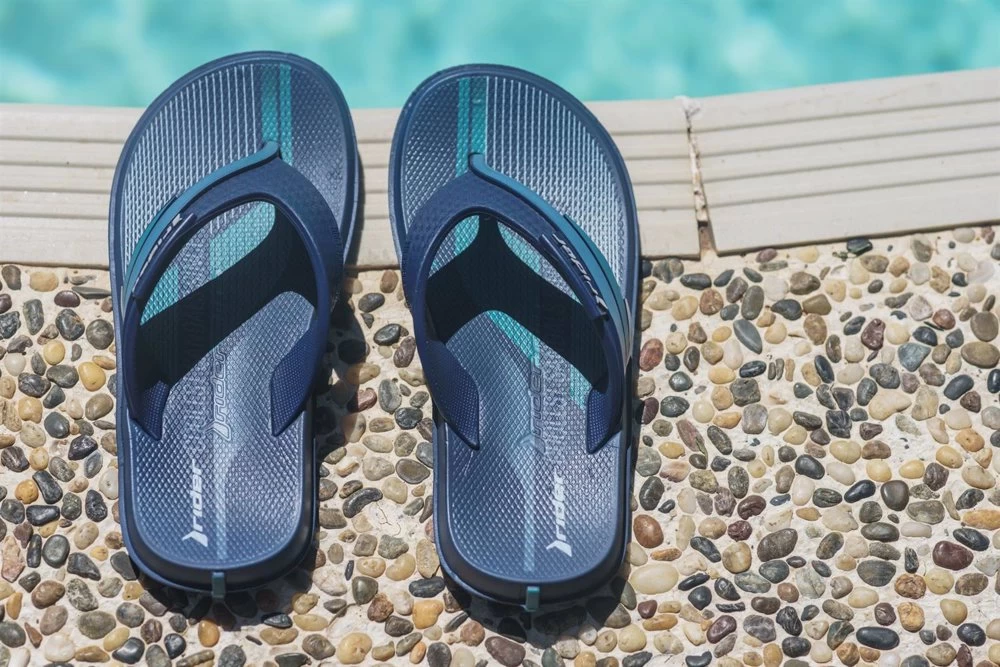 The R Line Kids is a causal flip flop that’s perfect for any occasion. The sole is finished with a printed geometric pattern which flows onto the straps.