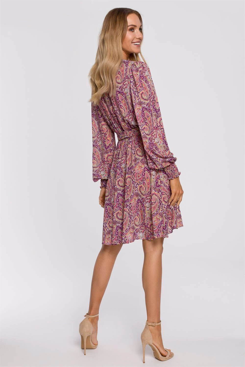- Product details: woven fabric with print ; wrap dress with a tie detail ; long sleeves with elasticated hem ; above knee length ; unlined; our model is 171 cm tall and wears size S