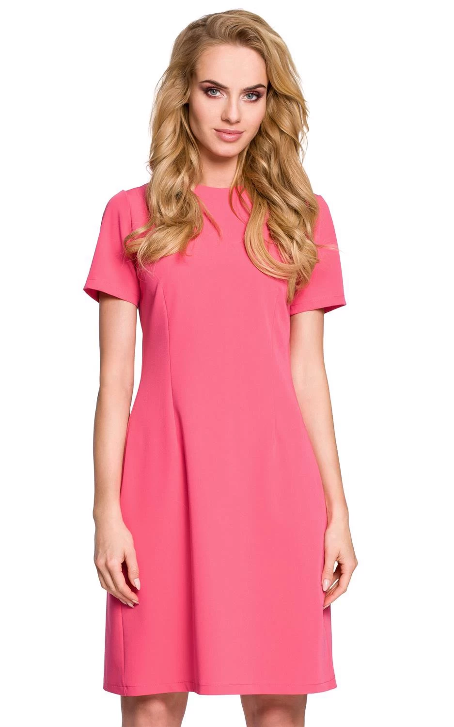 Subtle simplicity with a decorative accent – a back pleat and notched neck. This dress offers max-imum comfort and very feminine look either for a day at work or a cocktail party.