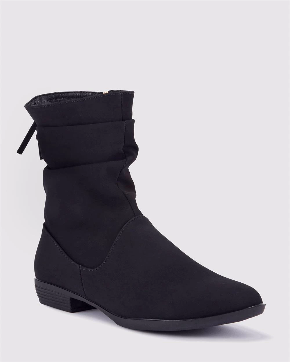 Boots that stand out! Dayley ankle boots by NOVO are uniquely designed for the ones who love exclusivity. With almond toes and flat heels the sleek style has a slouchy sock-up style you will love. Make the most of your fashion sense with interesting colours –Black Taupe and Camel.
