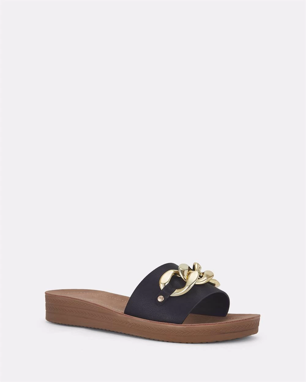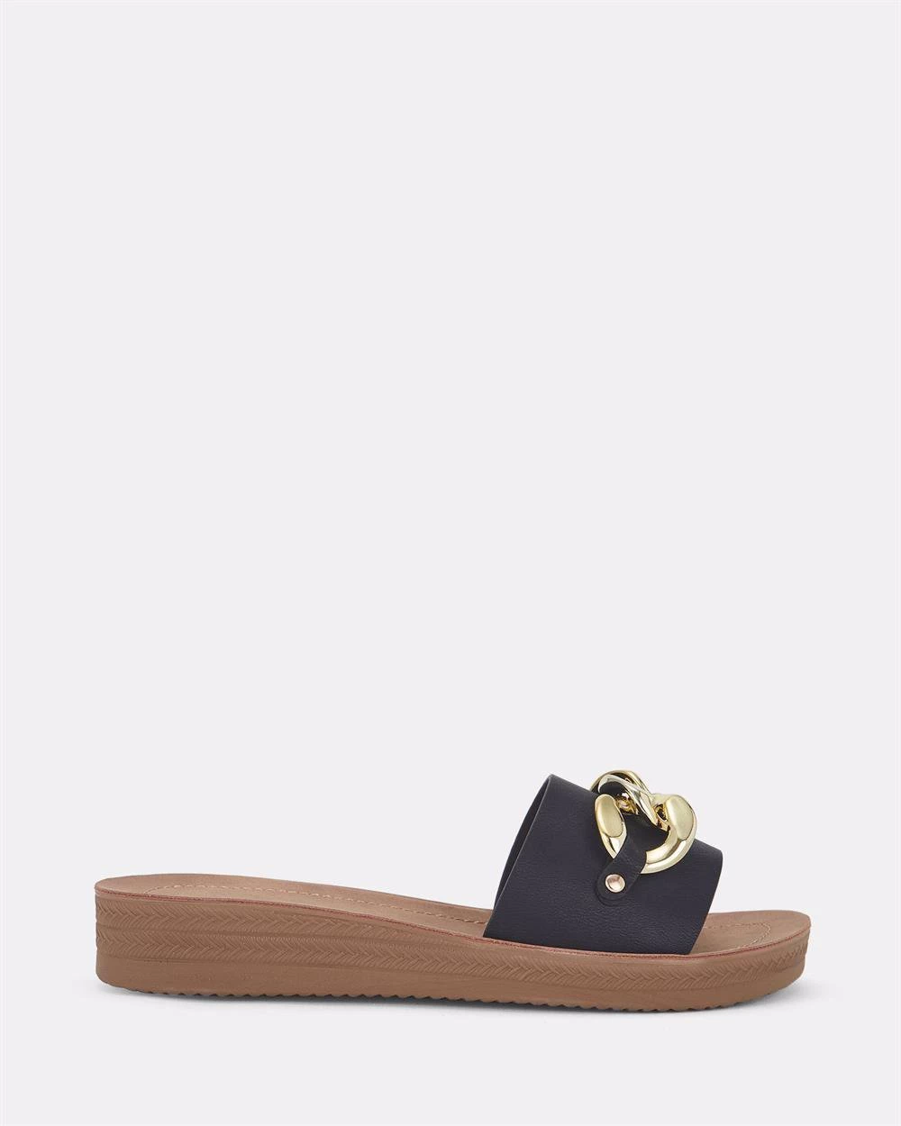 The SPENCE slide on is our latest beach footwear fav and the gold chain detailing just has our hearts! With a leather look upper and platform sole these slide ons provide ease of wear from the beach to dinner so that your footwear can transition easily from a chill vibe to a fun night with friends! Pair them with a black shrug or wrap dress for the proper beach girl aesthetic!