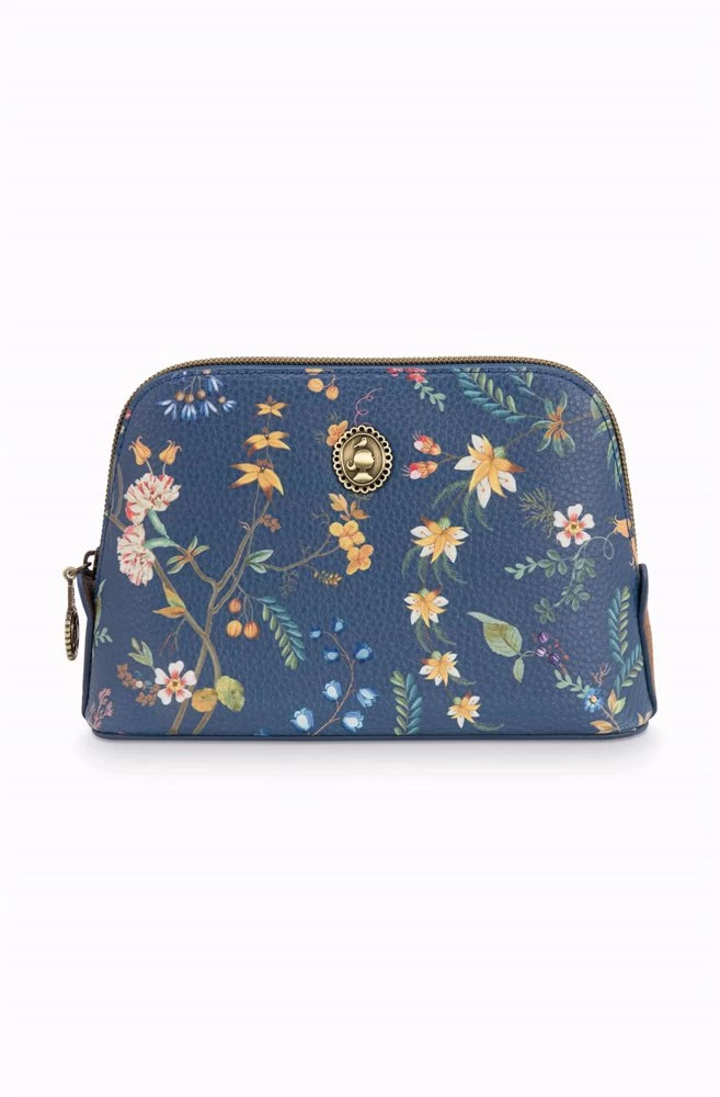 This small cosmetic bag is perfect for daily use in your bathroom or to take with you on a trip. The cosmetic bag is made of water-repellent satin that is trimmed with faux leather piping. You will find multiple exotic flowers and plants in different shapes and colors on a dark blue background which represent the beautiful Petites Fleurs print. Mix & match the cosmetic bag with our Homewear items of this season for a stunning result.
