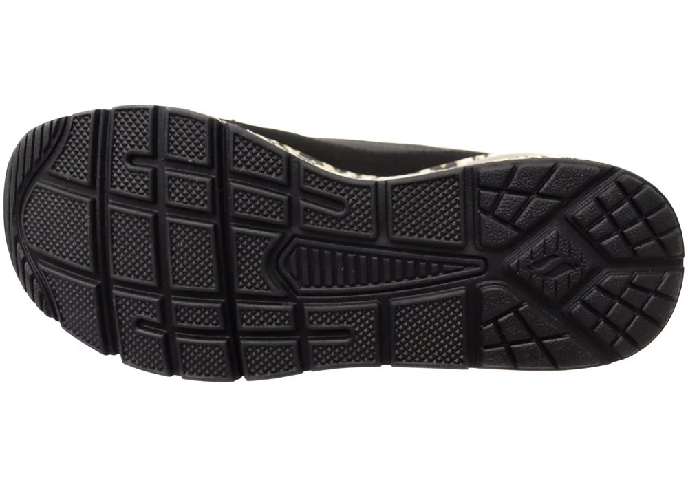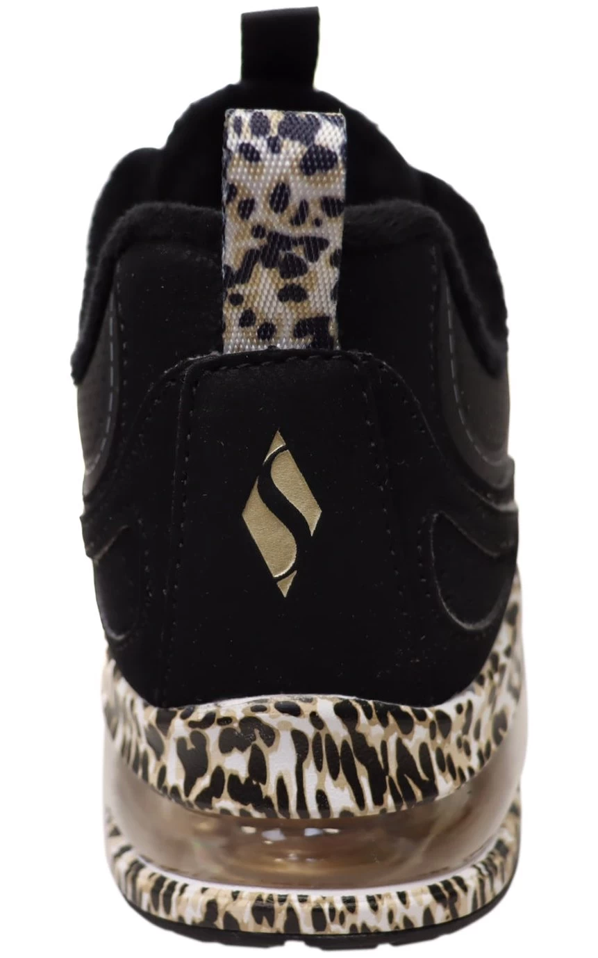 Enjoy all day comfort for your feet with Skechers. This eye catching lace-up style features a perforated multilayer faux leather upper with a leopard print midsole, Skechers Air-Cooled Memory Foam insole, and visible Skech-Air technology.
