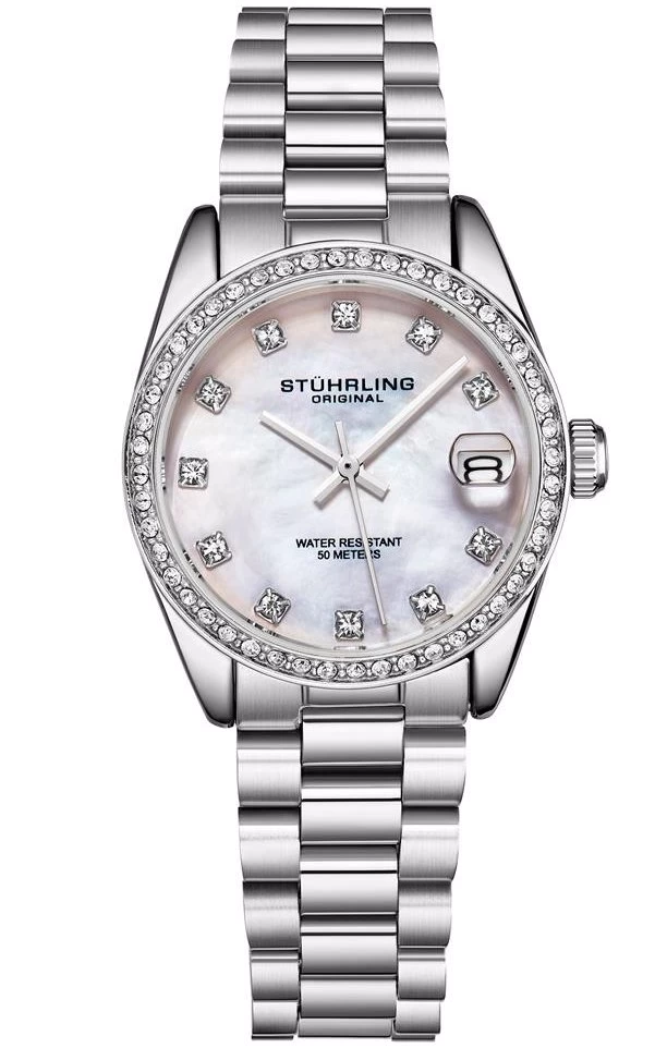 - Push/Pull Serrated-Style Crown with Stührling S Logo