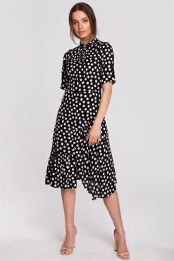 - DetailsSoft viscose with forever-trendy polka dot print. Cut to fit the bodice and drop loosely down the waist. It’s not only a summer dress but an all season piece depending on what you style it with.