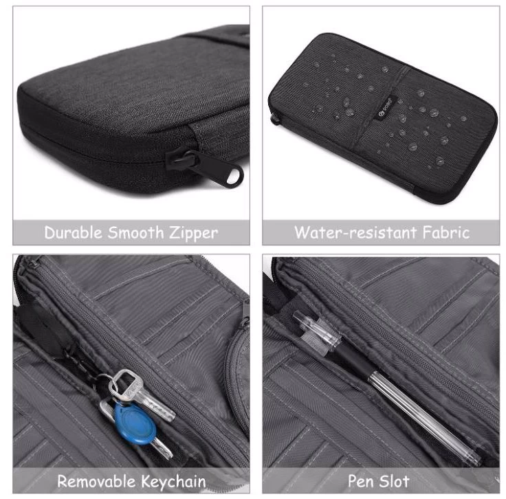 - Travel organizer with internal pockets for storing passports, tickets, money, and more
