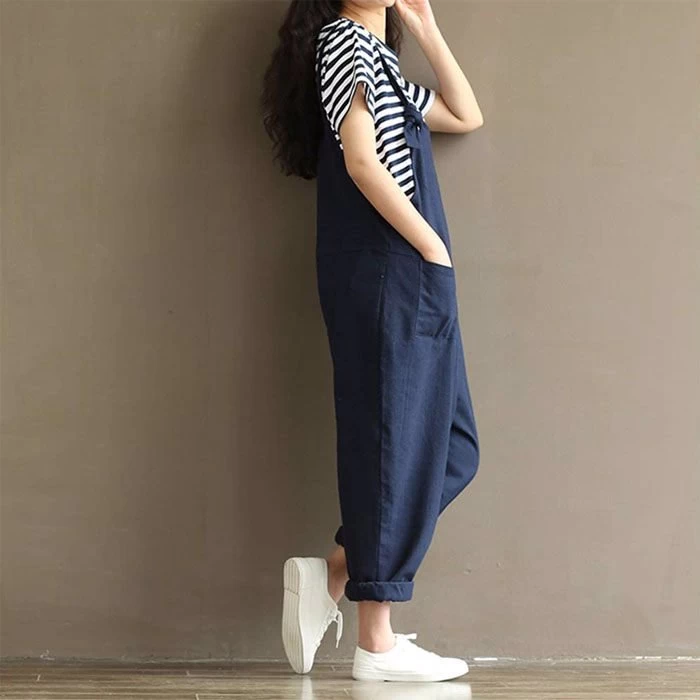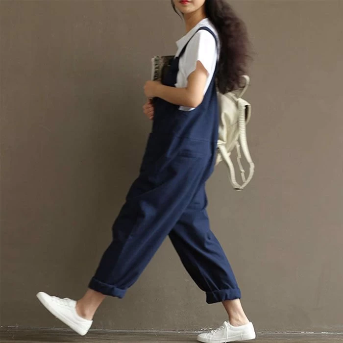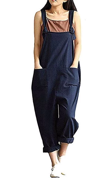 - Our overalls are simple and classic, Durable Elastic Linen Fabrics and Superb Sewing Techniques,Baggy Fit,Large Plus Size,Wide Legs, Long Pants Jumpsuits Romper with Two Front Pockets.