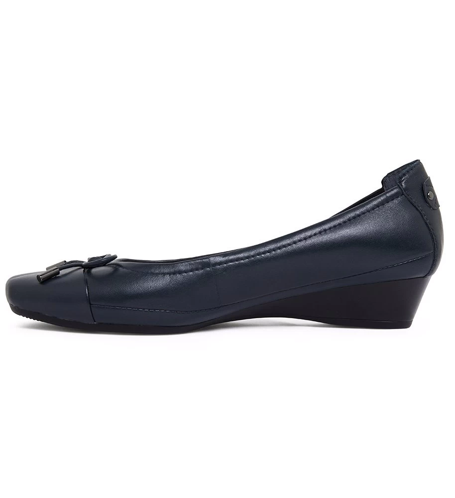 SHANNON embodies practicality with all day comfort. They’re crafted using a leather upper with a feminine bow detail, then set on a low wedge heel. Coordinate them with button down tops and tailored pants for a polished work wear look.