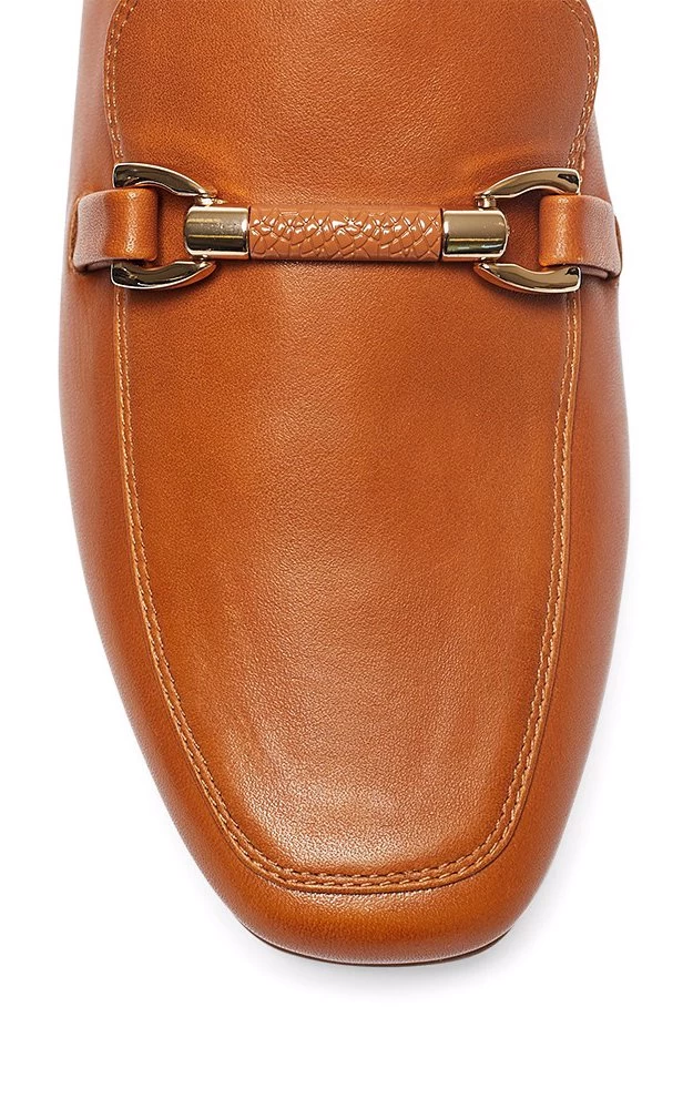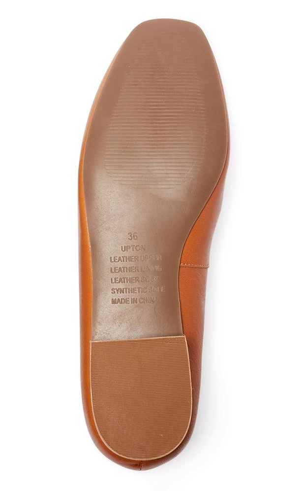Ground countless everyday styles wearing UPTON. The classic loafer silhouette has been updated with a polished square toe, rendered in leather and feature a simple chain detailing across the front vamp. Amplify the relaxed elegance by wearing this under straight jeans or long skirts.